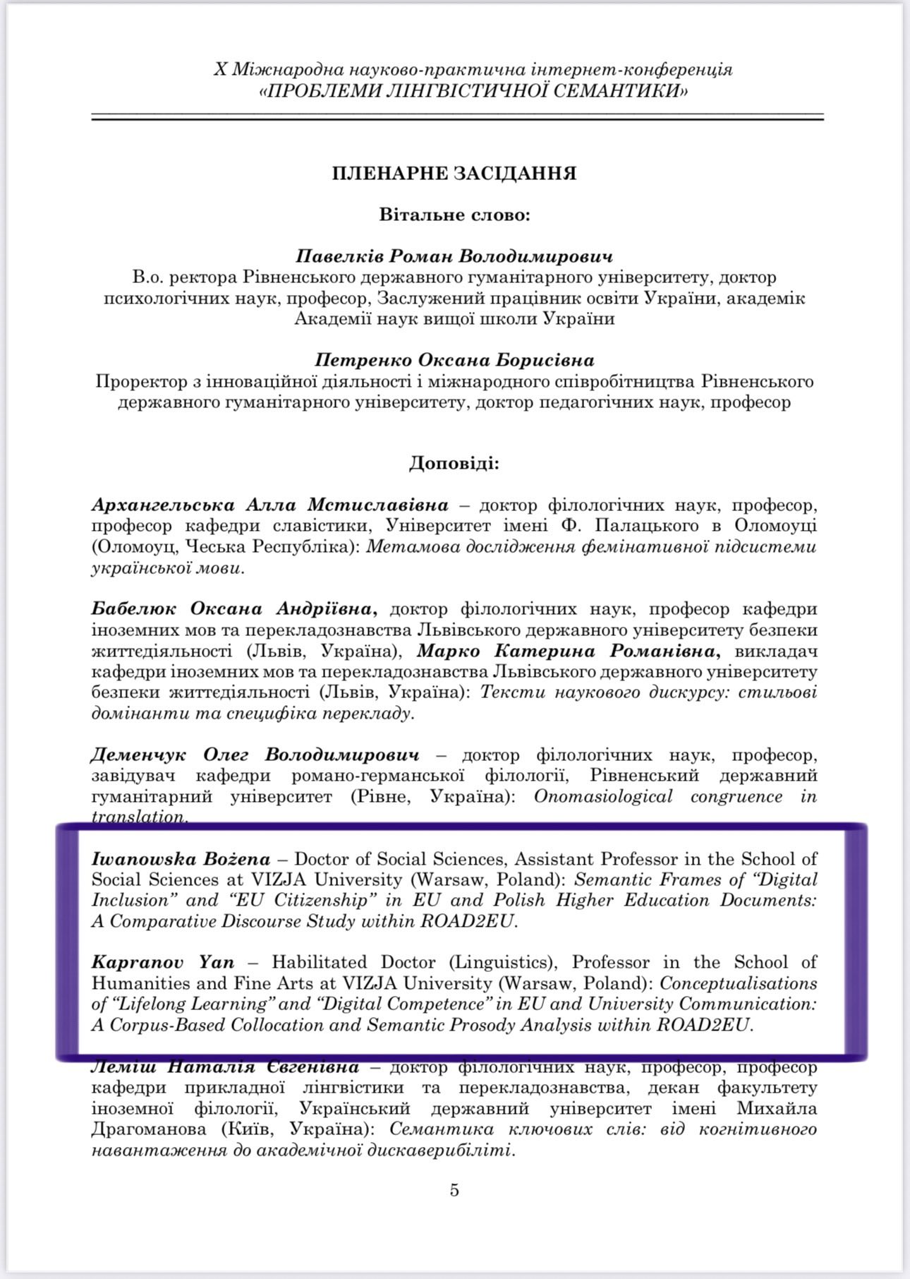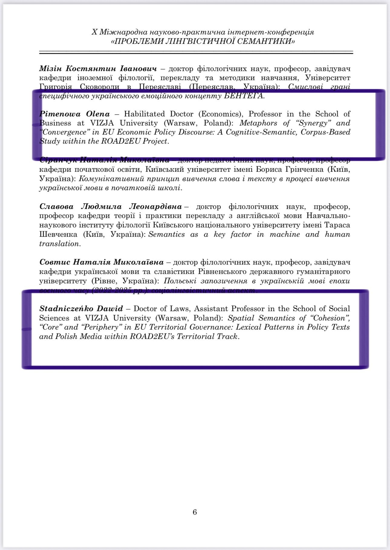 that all key team members of the international Jean Monnet project ROAD2EU have been invited as Members of the International Organising Committee of the conference “Проблеми лінгвістичної семантики / Problems of Linguistic Semantics” (10th International Scientific and Practical Internet Conference, 20 November 2025, Rivne State University of the Humanities, Rivne, Ukraine). ![]()
