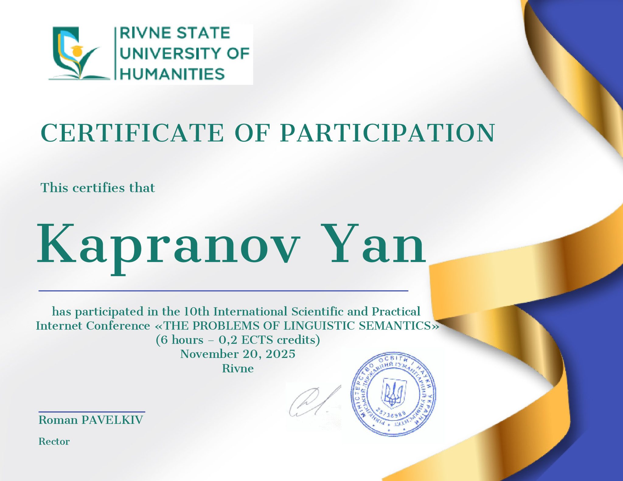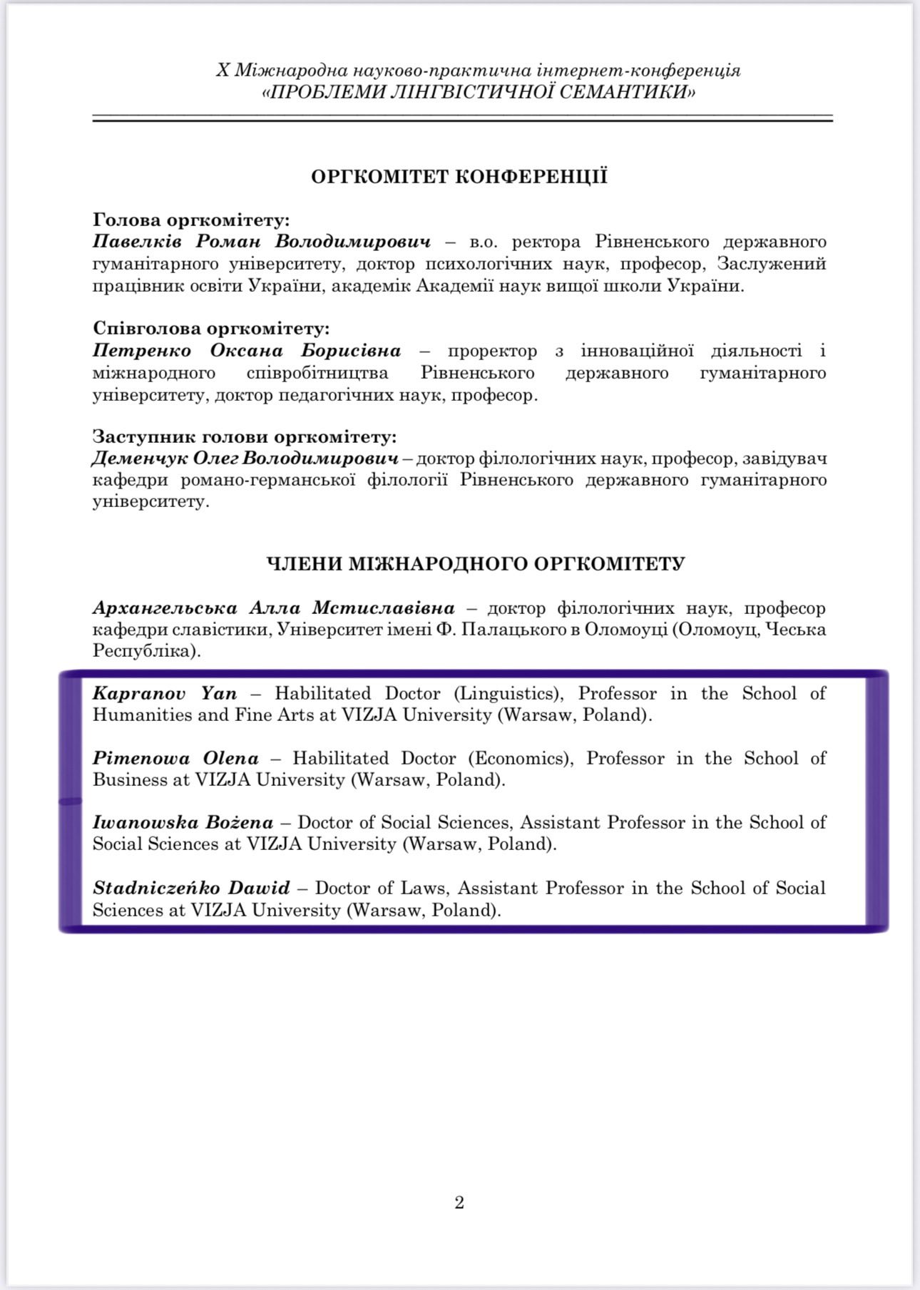 Yan Kapranov – Habilitated Doctor (Linguistics), Professor, School of Humanities and Fine Arts, VIZJA University (Warsaw, Poland)